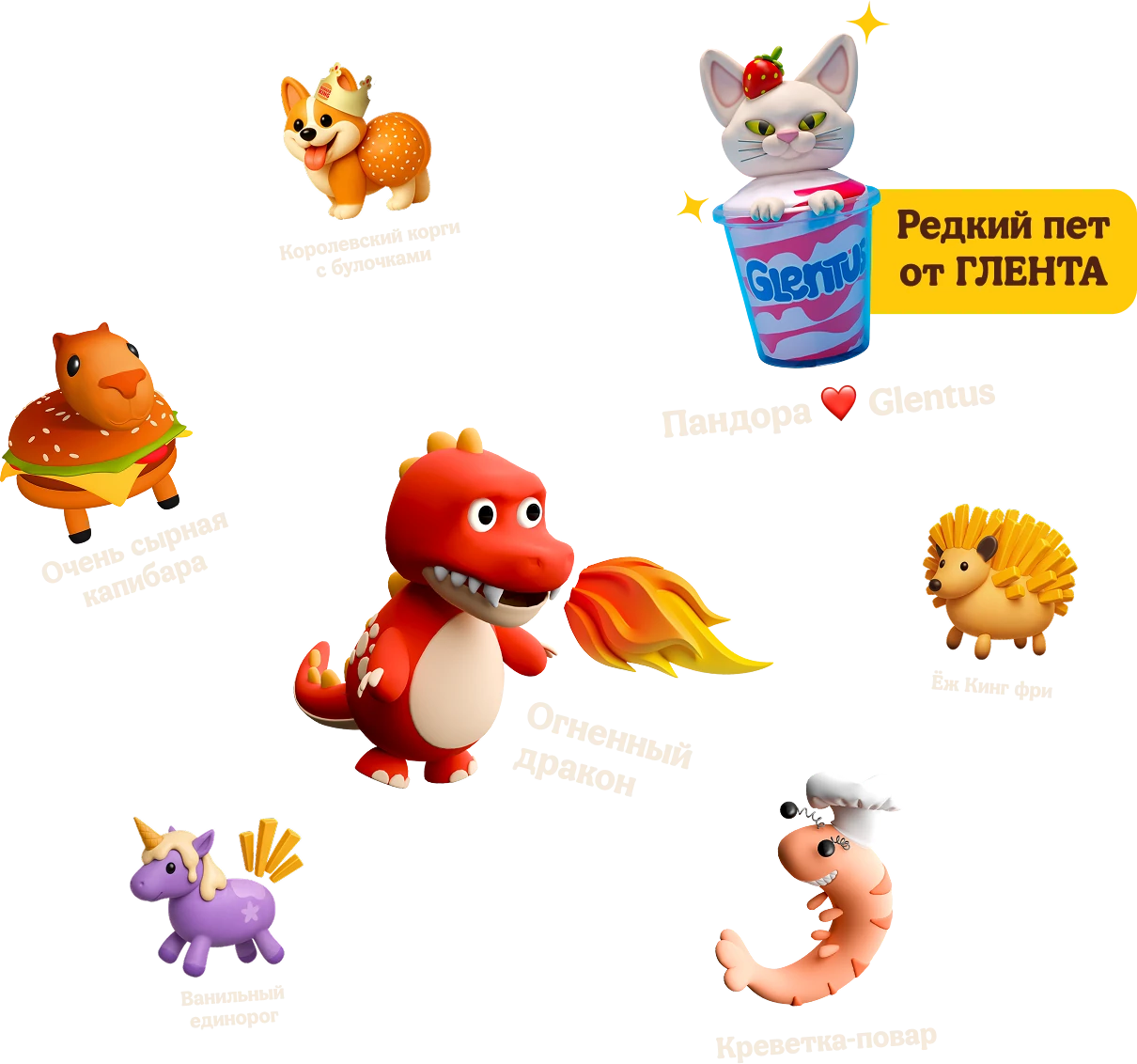 Огненный дракон, супер сырная капибара, шеф-креветка, ванильный единорог или сладкая булочка корги - покупай РБ комбо в Бургер Кинг и получай не только крутые скины, но и космически очаровательных питомцев.